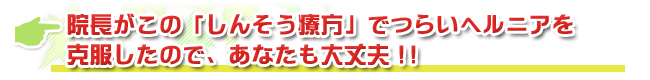 しんそうで体の歪み(骨盤や背骨の歪み)が直った、つまり体の元から良くなったから辛いヘルニアや腰痛が良くなったのです。