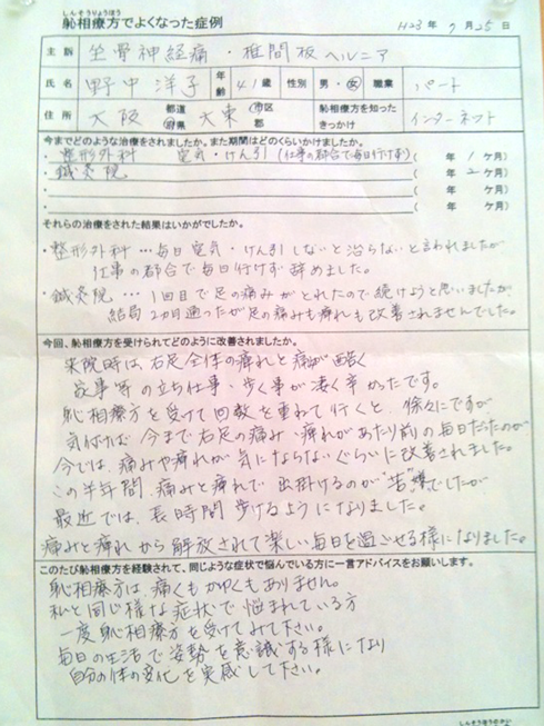 坐骨神経痛・足のしびれ(患者さまからの喜びの声)