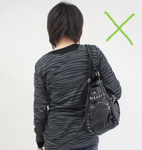 - ◎カバンを右肩、左肩交互に持ち替える。