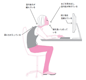 - ◎あごを前に突き出し、背中を丸くする姿勢をしない